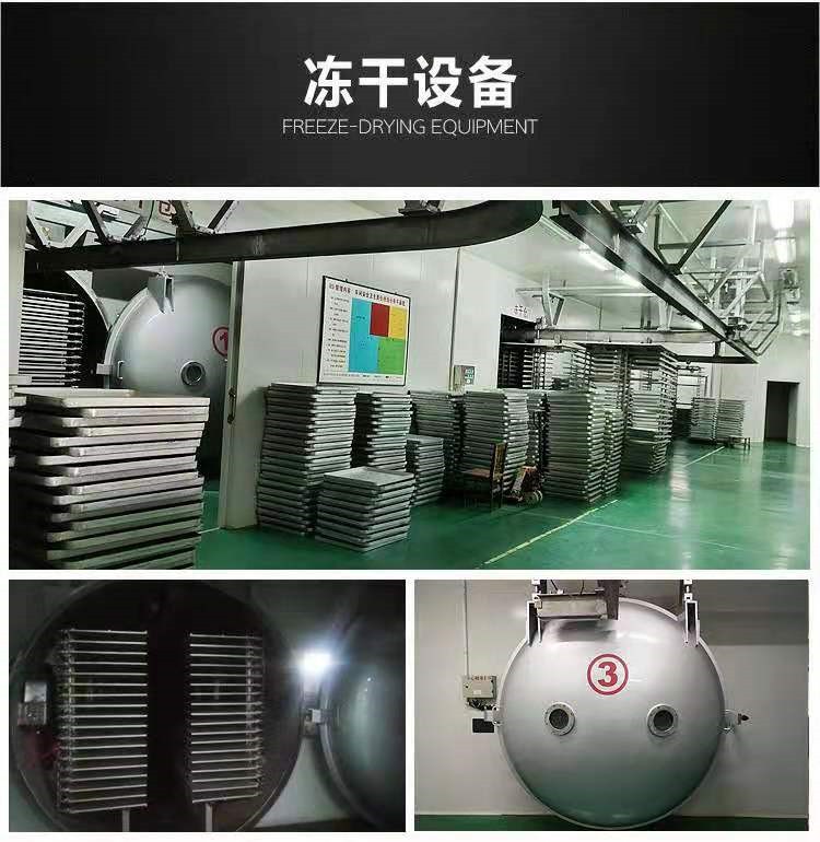 已經脫去水分的物料呈塊狀,經粉碎達到要求的細度,即為蔬菜凍干粉的制成品。
